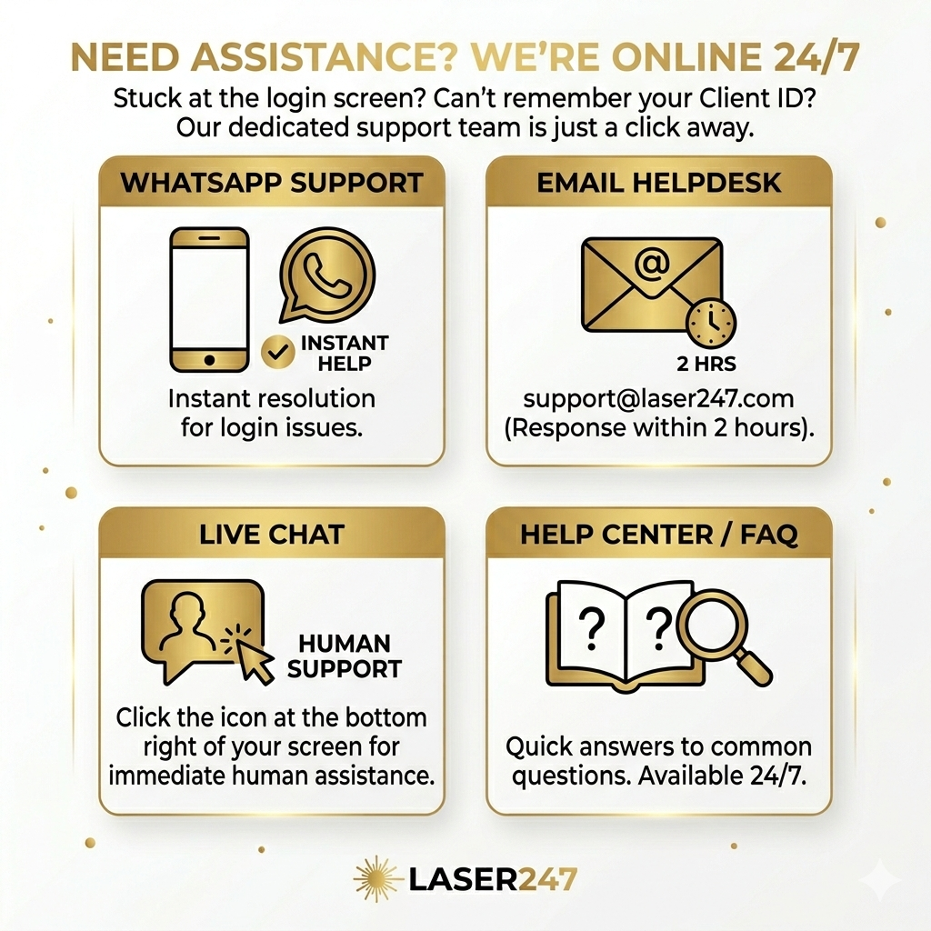 Stuck at the login screen? Can’t remember your Client ID? Our dedicated support team is just a click away.